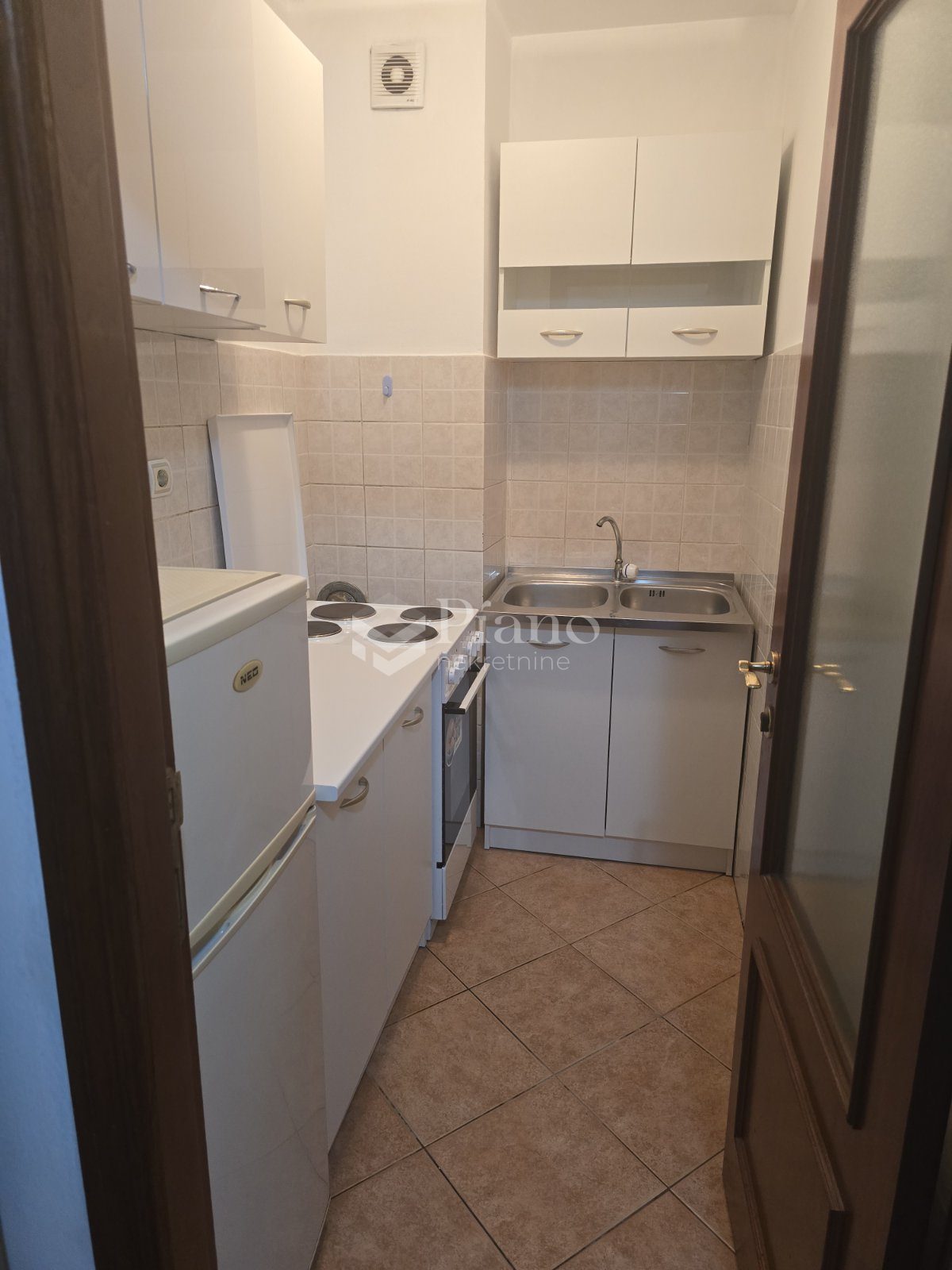 The furnished studio apartment is located on the first floor of a building without an elevator at Stari Aerodrome. It has all the necessary household appliances and is immediately available.