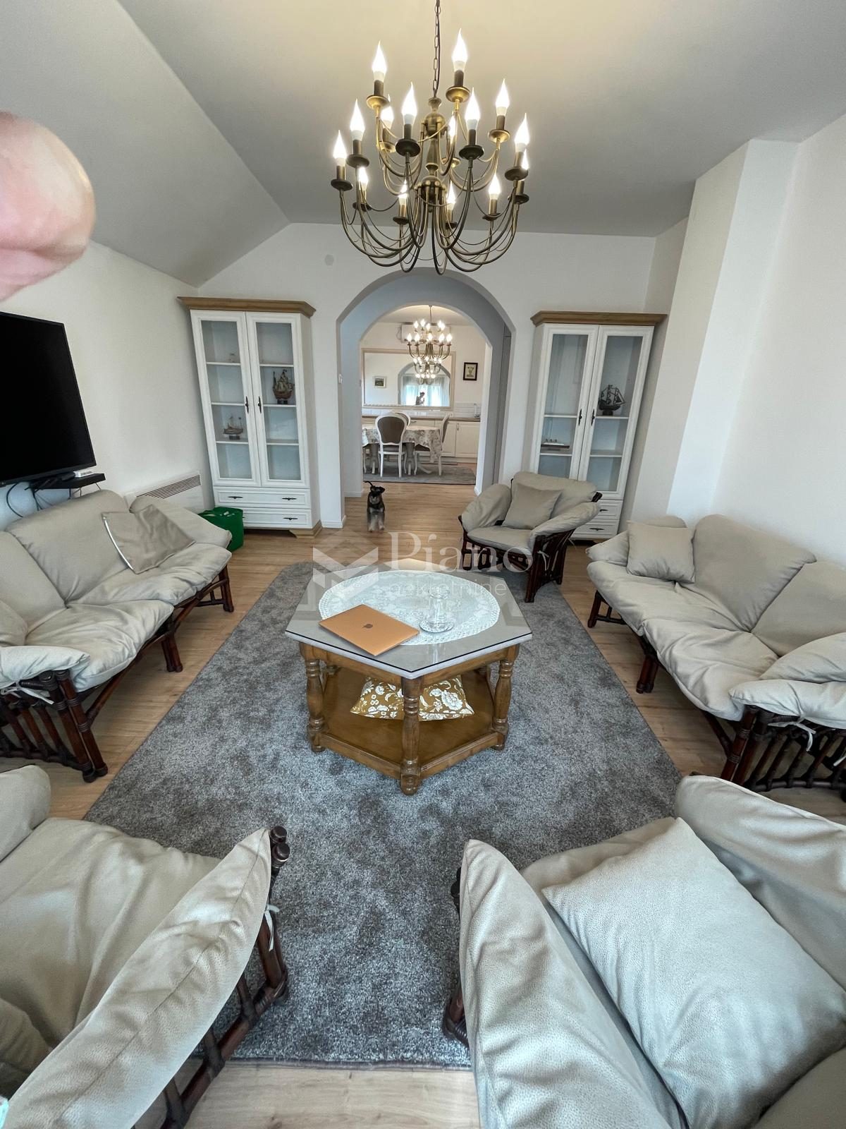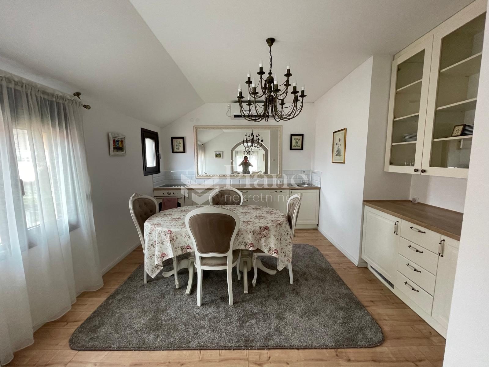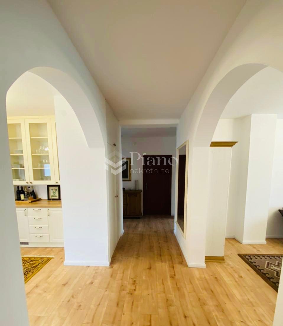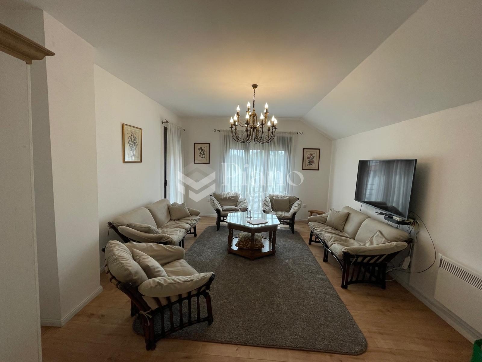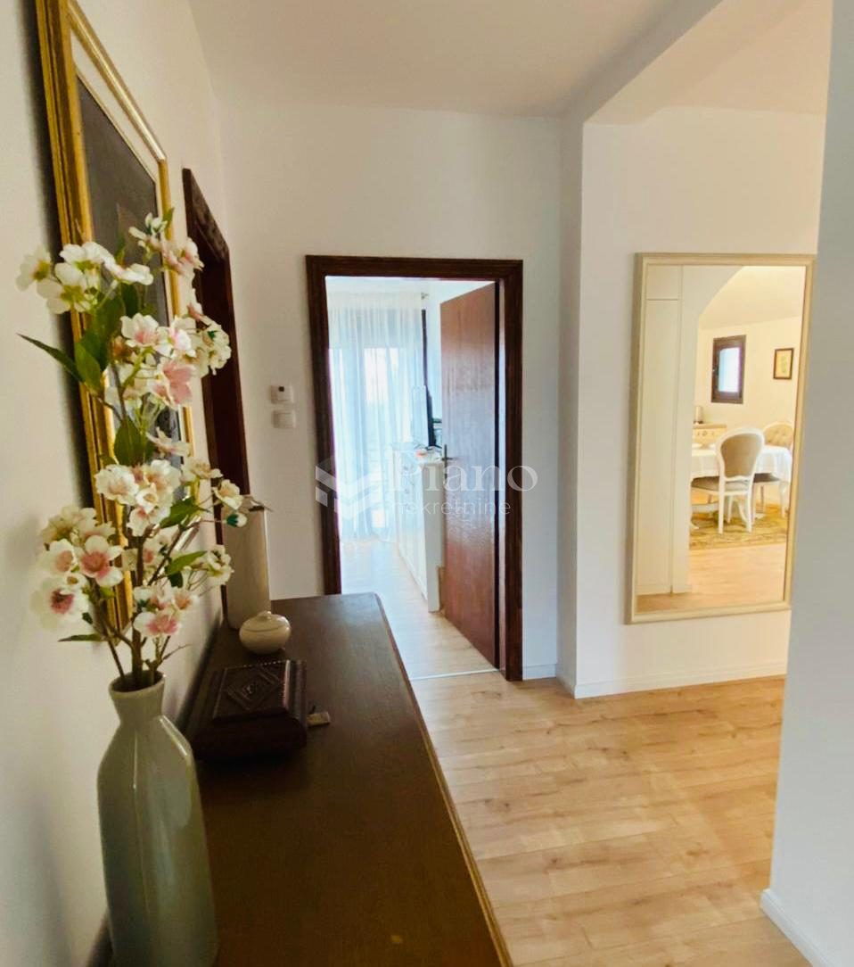 3A nicely furnished three-room apartment is located on the first floor of a house in Gornja Gorica, it is extremely spacious, it has all the necessary household appliances, a yard and a parking space.